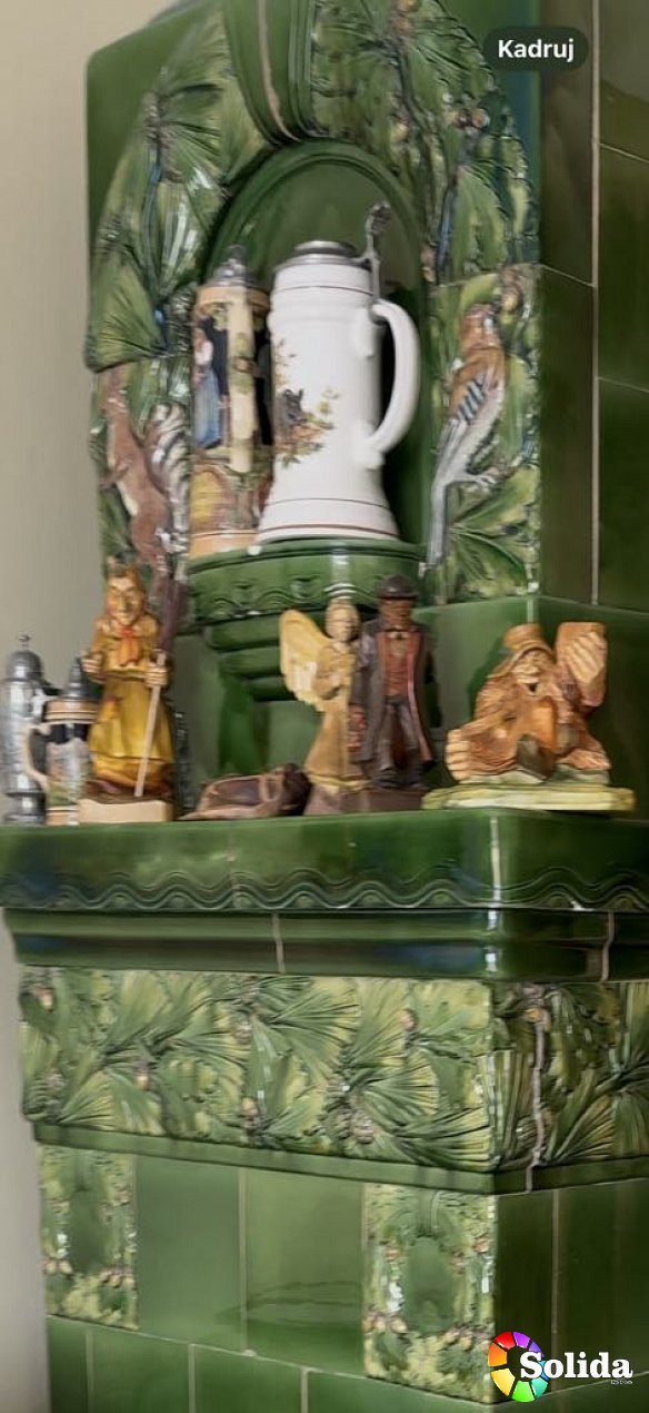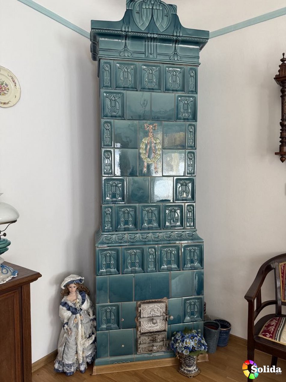 posiada niezwykłe ozdobne piece kaflowe, na podłogach położony został parkiet oraz płytki z zależności od strefy użytkowania.