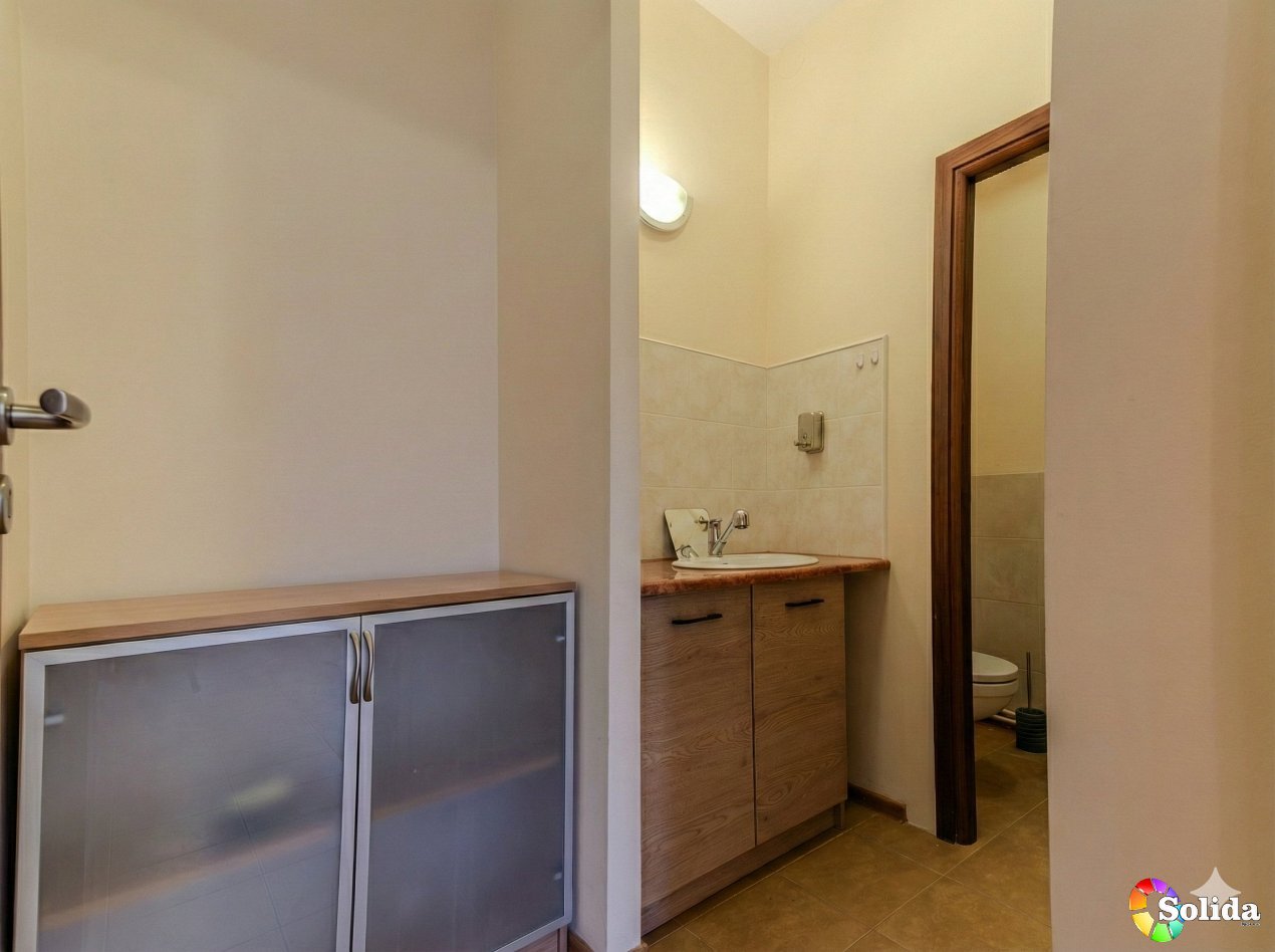 Powierzchnia lokalu to 25 m2 z zapleczem socjalnym na wysokim parterze w kamienicy.